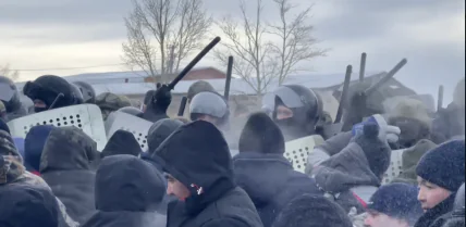 Місцевих жителі, які вийшли на протест зіткнулись з агресивним протистоянням силовиків, які застосували сльозогінний газ, а у відповідь протестувальники оточили правоохоронців та закидали сніжками.