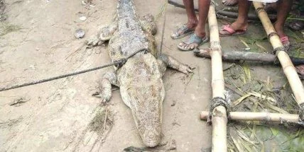 Місцеві жителі зловили крокодила, а потім зажадали 50 000 рупій (майже 700 доларів), щоб повернути його.