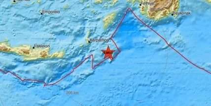 Як повідомляє Ekathimerini, епіцентр землетрусу був зафіксований за 74 від Карпатос на глибині близько 10 кілометрів.