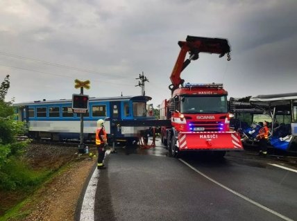 «При зіткненні потяга з автобусом уранці у Бенешовському районі травми отримали 10 людей, одна жінка – важкі», - інформує ЗМІ.
