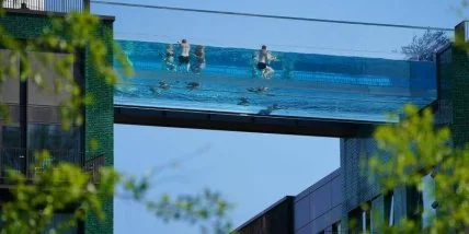 У південній частині Лондона з'явився перший в світі скай-пул - "плавучий басейн" на висоті 40 метрів, який з'єднує два хмарочоси. Так як дно ноу-хау повністю прозоре, створюється відчуття, що люди в ньому ніби парять у небі.