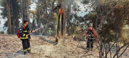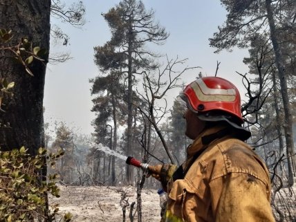 Сто пожежників з України борються з вогнем в Північній Евії, поблизу курортного містечка Каматріадес. Працювати доводиться в екстремальних умовах - на Евії днем температура перевищує +40 градусів.