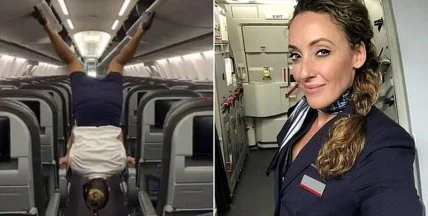 Стюардеса в туфлях на високих підборах ногами закрила верхні полиці в літаку і прославилася на весь інтернет (Відео)