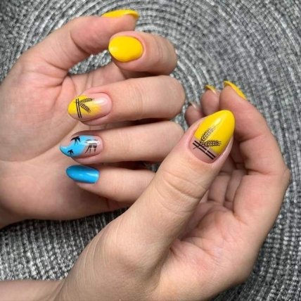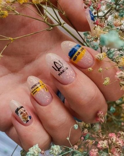 Особливу увагу українки зараз приділяють патріотичним дизайнам. Малюнки на патріотичну тематику, символіка України, вишивка, поля пшениці, волошки, мальви, соняшники та маки все частіше можна зустріти на нігтиках у красивій половині людства. Також популярністю користуються і знакові фрази та мінімалістичний синьо- або блакитно-жовтий манікюр у різних варіаціях.
