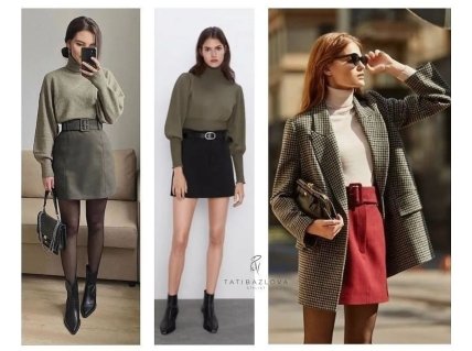 Блузи та сорочки повинні бути обов’язково: 1-2 базові та пара акцентних. Спідниця-олівець прямого крою, спідниця-трапеція. Можна кілька різних. Також базові універсальні джинси: темні сірі чи чорні, індиго чи блакитні. Крім того, не забуваємо про топи: їх має бути кілька — першого шару під піджаки.