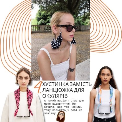 Хустка замість ланцюжка для окулярів – тренд, який варто приміряти. Виглядає дуже свіжо та яскраво!
