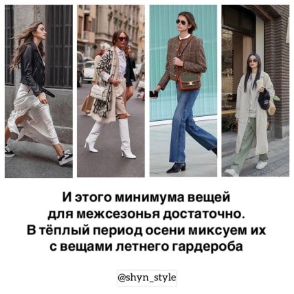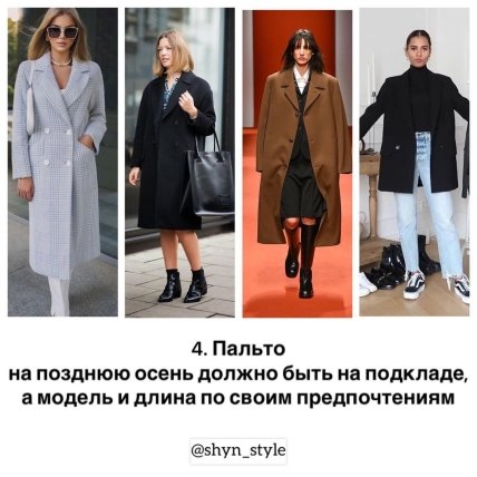 Як зазначає стиліст shyn_style у своєму блозі в Інстаграм, для цього осінь потрібно поділити на два періоди: теплі та холодні, а після вже складати осінні луки і купувати ті речі, яких не дістає.