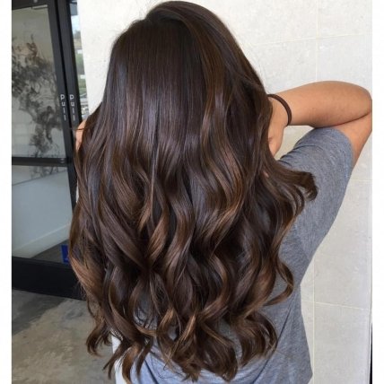 Темний шоколад, особливо у поєднанні з бебілайтом (babylights) у вигляді тонких карамельних відблисків усюди. Таке фарбування надає волоссю багатомірність і рух — вони ніби світяться зсередини. Щобільше, таке фарбування підійде всім, головне підібрати палітру за тоном шкіри та відтінком очей. Дівчатам з теплим підтоном краще вибирати золотистий шатен та каштановий, з холодним – кавовий та коричнево-чорний.