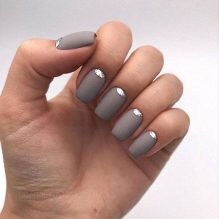"Багатий" манікюр також можна прикрасити легким мерехтливим дизайном. Це може бути також місячний манікюр з природним відтінком та шимерною лункою. Крім того, можна експериментувати з геометрією на нігтях, але не надто складною.