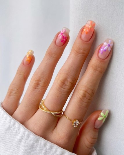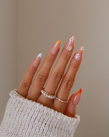 Цікаві варіанти манікюру з ромашками та барвистими малюнками
