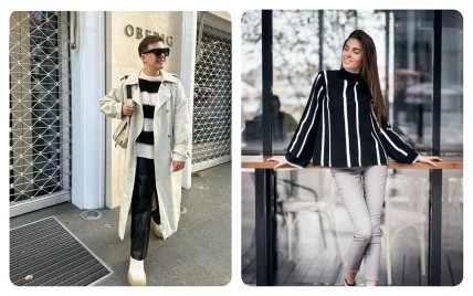Стиліст підкреслює, що дійсно, горизонтальний напрямок смужки більше працює на розширення, а вертикальний — на витягування силуету. Однак не варто думати, що будь-яка горизонтальна смужка буде зорово сильно збільшувати силует.