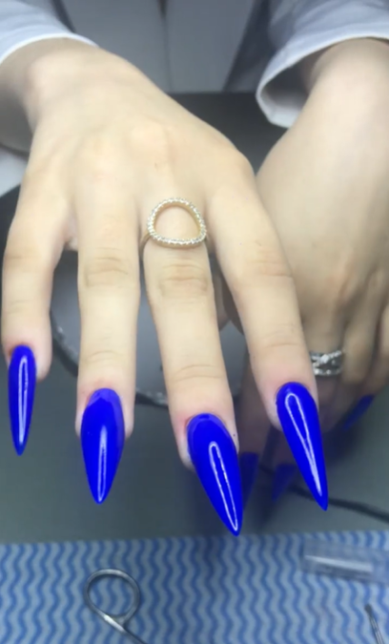Манікюр з ефектом блискучого оксамиту додає глибину вашому образу. Такий стиль створює відчуття розкоші та неймовірної м’якості, приковуючи усі погляди до ваших нігтів. Цей дизайн виконаний з нарощуванням на "трамплінчики".