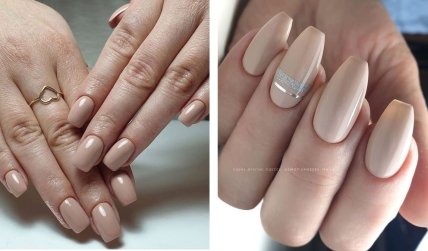 Нюдові, бежеві та кава з молоком – це все відтінки, які максимально наближені до природного відтінку нігтів. Такий манікюр може бути ледь помітним, проте зробить ваші нігті акуратними та витонченими.