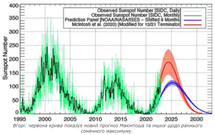 Фахівці кажуть, що зміна останнього сонячного циклу (з 24-го на 25-й) відбулась у середині грудня 2021 року, сягне свого піку 2024-го і має згаснути до кінця 2031-го.