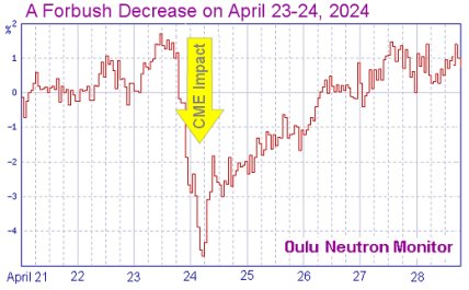 Як пояснюють науковці Хмельницького національного університету, після сильних сонячних спалахів виникає інше явище – буря космічного випромінювання (радіації). Воно проявляється у вигляді різкого зниження інтенсивності космічного випромінювання на Землі приблизно в період початку на Землі магнітних бурь.