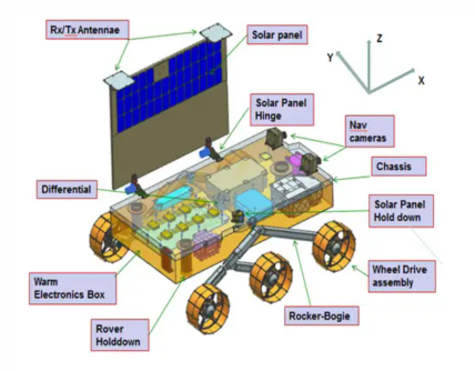 Посадковий модуль "Вікрам" важить близько 1500 кг і несе 26-кілограмовий ровер, який називається Pragyaan, що на санскриті означає "мудрість".