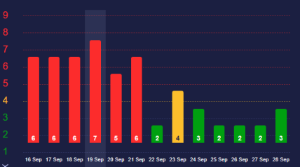 З 19 вересня потужність магнітної бурі збільшилась до 7 і зараз перебуває на цьому рівні. Це буде максимальний рівень з трьох найближчих днів. Геомагнітний шторм триватиме ще 20 та 21 вересня. Тоді його сила коливатиметься в межах 5-6 балів.