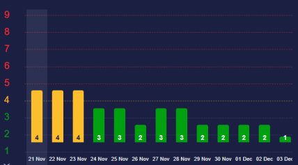 Згідно з їхніми даними, протягом 21-30 листопада на Землі очікується лише невелике магнітне збурення 4 балів. Воно протримається три дні — з 21 по 23 листопада. Після того, з 24 по 30 листопада, не передбачається будь-яких коливань.