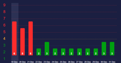 Наразі, 19 грудня, на нашій планеті відбувається магнітна буря, потужність якої протягом дня не збільшуватиметься понад 6 балів. Наступної доби, 20 грудня, бушуватиме шторм, який знизиться до 5 балів, однак 21 грудня поновиться до рівня, який був у вівторок.