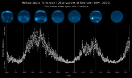 Хмарність, яка присутня на Нептуні, здається є причиною сонячної активності, а не чотирма сезонами планети, кожна з яких триває приблизно 40 років.