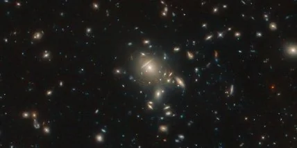 На знімку зображено так зване гравітаційне лінзування - ефект, при якому простір викривляється масивними об'єктами і світло згинається.