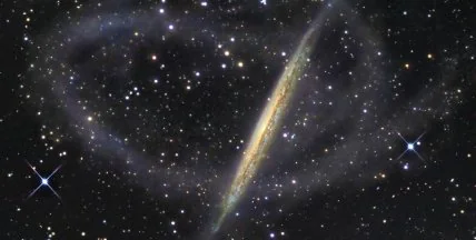 На фото галактика виглядає як витягнута лінія зірок і темного пилу, однак ця галактика класифікується як спіральна галактика, як і наш Чумацький Шлях.