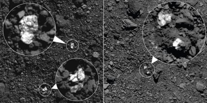 На знімках зонда OSIRIS-REx видно яскраві, багаті піроксенами уламки Вести на поверхні астероїда Бенну