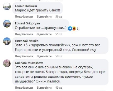 Цікаво те, що поліцейські на місце прибули майже вчасно. Проте гонитва їм не світила — вони пересувалися на велосипедах, які, звичайно, набагато повільніші, ніж скутери.