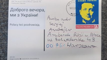 Додається, що одну таку марку надішлють особисто Володимиру Зеленському. Ще одну відправили меру Львова Андрію Садовому. Також цікавим є факт, що конверт з такою маркою надіслали послу Росії в Польщі Сергію Андрєєву. Там написано "Доброго вечора, ми з України".