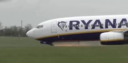 Літак Ryanair гальмував "черевом" під час посадки: з’явилося епічне відео