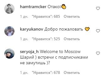 Громадяни РФ навперебій писали коментарі із захопленням: "Ласкаво просимо!", "Як добре, що ви приїхали", "в Україні спалахне". Склалося враження, що до Шарія на сторінку прийшла ціла армія ботів, бо сенс коментарів мало чим відрізнявся. Апогеєм стали повідомлення у стилі: "Шарія в президенти РФ", або "Нам би таку людину в Росії".