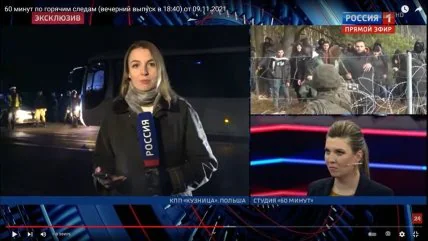Зокрема, в основному ситуації на білорусько-польському кордоні було присвячено вечірній випуск передачі "60 хвилин" (з пропагандисткою Ольгою Скабеєвою в якості ведучої) на російському державному телеканалі "Росія 1".