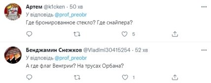 Також на відео можна помітити лише російські прапори та інших учасників зустрічі — ймовірно, охоронців, на яких є захисні маски. Путін та Орбан же обійшлися без засобів індивідуального захисту.