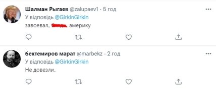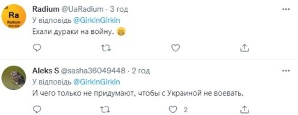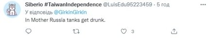 З ним погодилися багато інших користувачів Twitter, зокрема англомовних. Хтось жартує про алкогольне сп’яніння водія, хтось — що росіяни готові на все, аби не воювати.