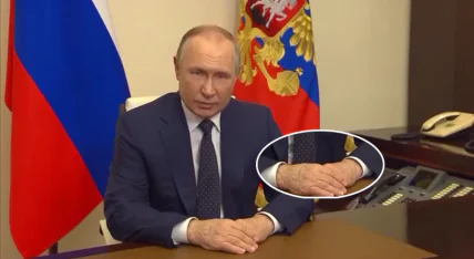 Ролик триває більше двох хвилин, при цьому сам путін рухається, а руки його складені на столі і весь час залишаються нерухомими, ще й виглядають опухлими, — цей момент зацікавив багатьох користувачів мережі.