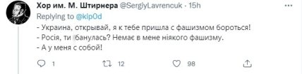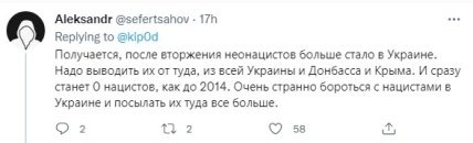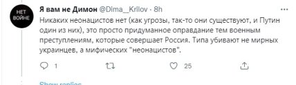 У відповідях на тред користувачі відзначили, що росія використовує це як виправдання вбивств українців і нацистів в Україні стало більше з початку вторгнення і навіть жартують на цю тему. Також використовували один із ботопитань "де ви були 8 років", які проросійські ботоферми використовують, щоб виправдати агресію росії.