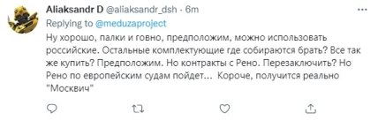 Перспективою розвитку Собянін назвав перехід із двигуна внутрішнього згоряння на електричний. У мережі користувачі жваво та з сарказмом відреагували на новину: "Вперед у минуле", "Назад в СРСР", а також припустили з чого робитимуть автомобілі, враховуючи нестачу російських виробництв запчастин.