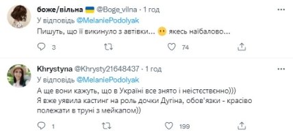 Варто додати, що з-поміж коментаторів були й ті, хто не повірив у вбивство доньки Дугіна. Користувачі припустили, що це все була постанова, а справжня Платонова зовсім скоро може з'явитися в іншій країні під чужим ім'ям.