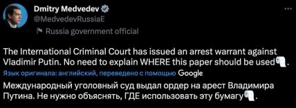 Знаменитий за безглуздими заявами колишній президент росії дмитро медведєв порівняв рішення МКС з "туалетним папером", а також написав, що нема потреби пояснювати, де слід використовувати цей документ.