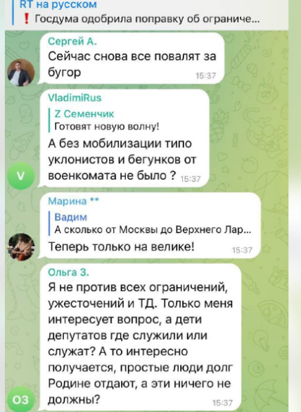 Ухилятнам, приміром, не можна буде втікати за кордон, отримати кредит, а варіанти заробити кошти поза армією обмежаться, бо зареєструвати бізнес теж не можна. Росіяни від таких нововведень в шоці, про що свідчать коментарі під новинами.