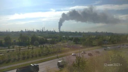 Як пишуть російські ЗМІ, чорний дим від пожежі у Дзержинському видно за кілька кілометрів від місця займання.