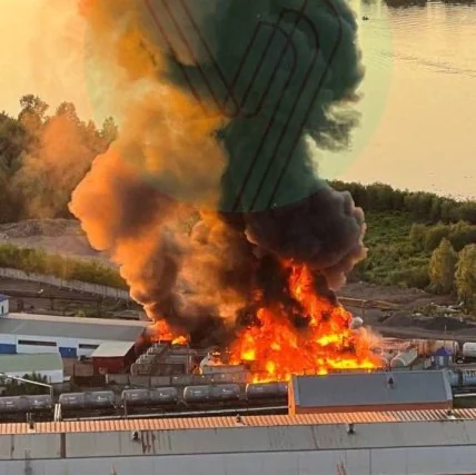Відомо, що спалах відбувся на залізничній станції — спалахнули цистерни та склад із пально-мастильними матеріалами. Причина пожежі невідома, на місці працюють пожежники та поліція. Також у гасінні залучено пожежний потяг та катер. Величезний стовп чорного диму видно за кілька кілометрів.