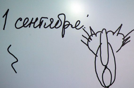 До речі, цей малюнок "Кішка. Вид ззаду" путін намалював 1 вересня 2013 року в школі в Кургані, і виглядав він наступним чином: