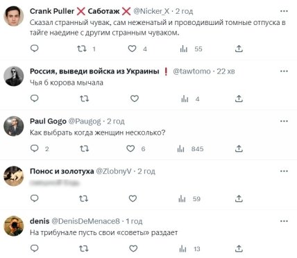 Ці слова викликали сміх серед присутніх та здивували коментаторів у соцмережах. Багато хто нагадав, що російський президент у розлученні і порадили роздавати поради на трибуналі в Гаазі.