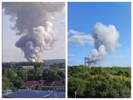У суботу, 26 серпня, у російському місті Кемерово спалахнула пожежа на складі феєрверків. Відбуваються масові розриви салютів, у небо піднімається великий стовп диму.