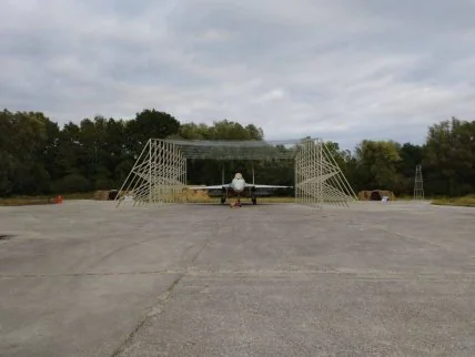 Очевидно, її мета полягає в тому, щоб ловити ті дрони, які будуть падати на літаки зверху, сподіваючись, що сітка зможе зупинити їх або принаймні зробити так, щоб вибух стався на відстані.