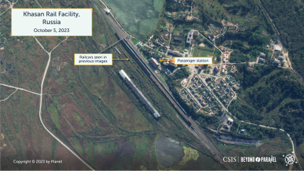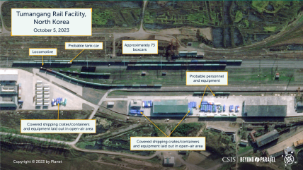 Супутникові знімки показали, що 5 жовтня на кордоні з росією у північнокорейському місті Туманган було зафіксовано безпрецедентну кількість вантажних вагонів, всього близько 73 вагонів. Про це інформує проект Beyond Parallel американського Центру стратегічних та міжнародних досліджень.
