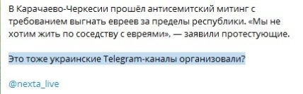 На чергову антисемітську витівку вже реагують у всьому інтернеті. Дехто, пригадуючи роспропаганді казки про "український слід" у Махачкалі, іронічно ставлять питання — "Це теж українські Telegram-канали організували?"