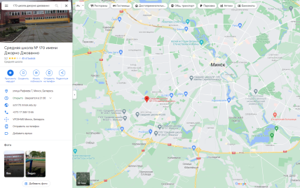 На Google-карті Мінська справді можна легко знайти цю школу, проте в офіційних документах вона просто "середня школа №170".
