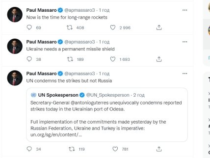 Ракетні удари росії по порту в Одесі 23 липня розлютили американського політика Пола Массаро, який опублікував відразу кілька десятків постів з одним посилом: "росія завжди бреше".